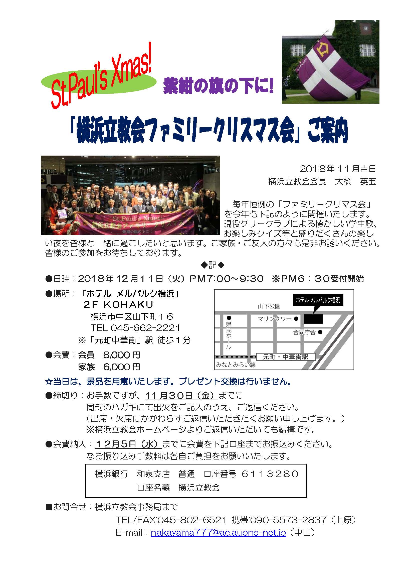 • 問い合わせ先:横浜立教会幹事長 上原敏博 または 担当 中山裕