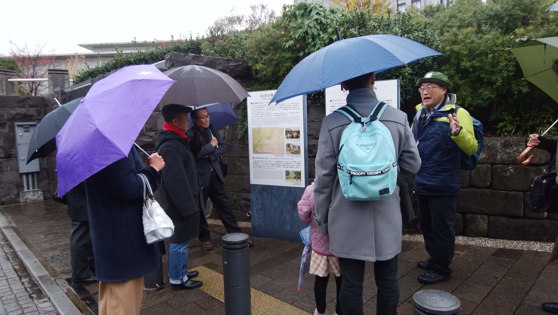 小雨が残る中を 横浜シティガイド協会のガイドさんを先頭に 横浜山手散策へ出発!