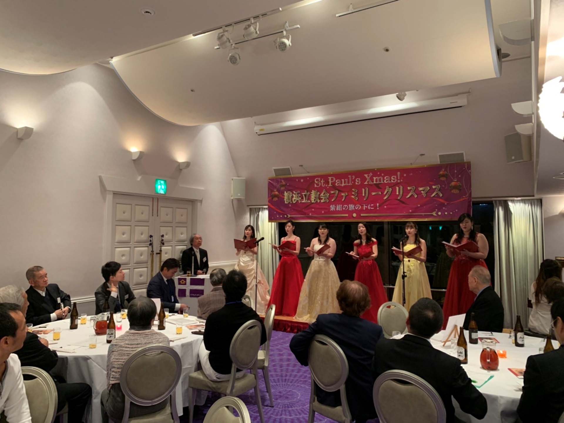 12月14日(土曜日)、毎年恒例のファミリークリスマス会が横浜市山下町のホテルメルパルク、7階レインボーの間で行われました。
