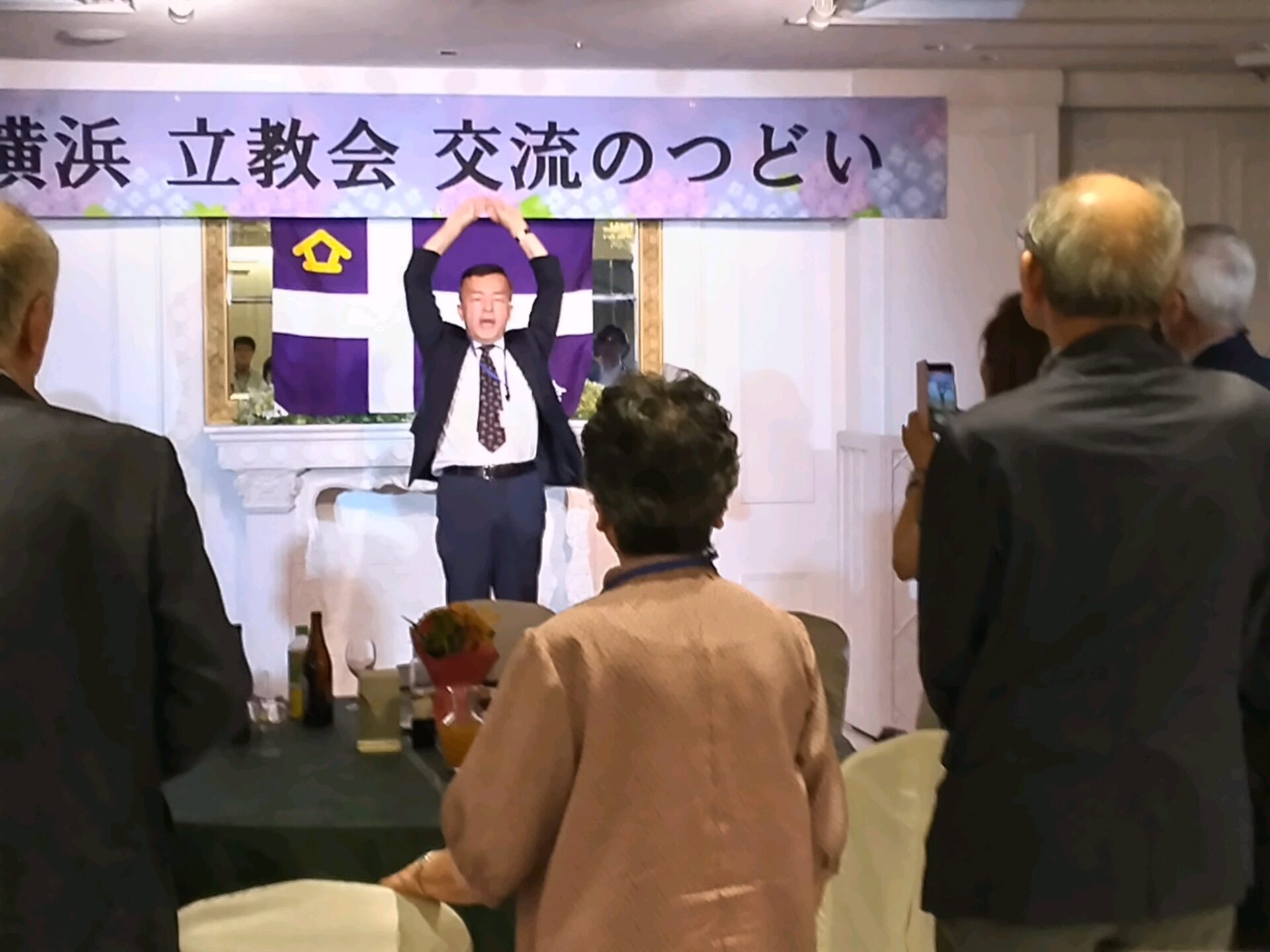 交流パーティーでは、来賓あいさつ、食前の祈り等の後懇親会となり、新入会員や同好会活動の紹介が行われました。駅伝出場もあって新会員がこのところ増えています。久しぶりの交流となっただけに大いに盛り上がりましたが、最後は恒例の校歌・応援歌で締めくくりました。
