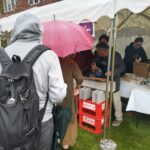 10月15日(日)の第61回ホームカミングデーはあいにくの大雨の中、池袋キャンパスで開催されました。今年は焼き鳥と横浜地ビールを販売しましたが、午前中は雨のため来場者は今一つでした。