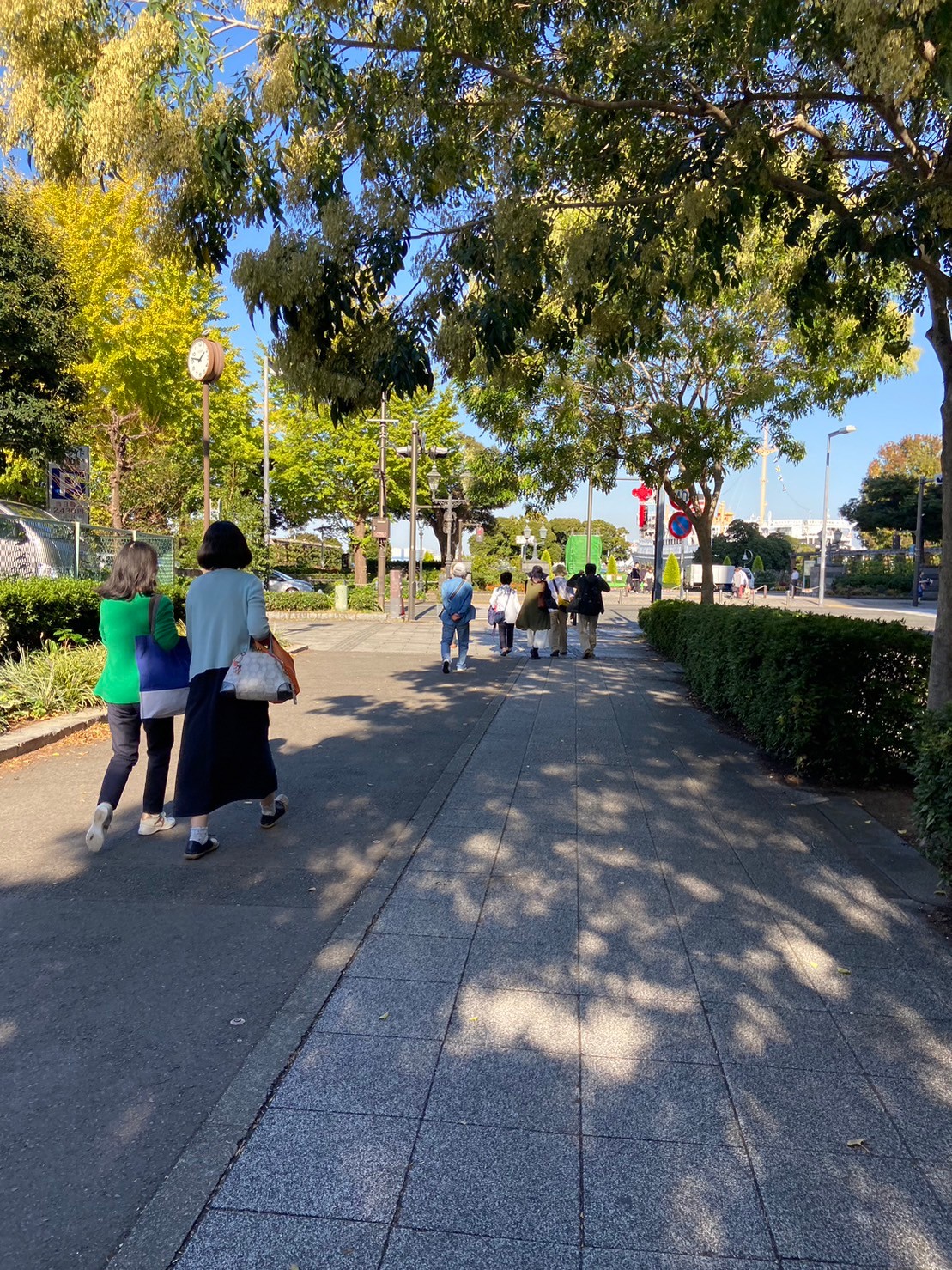 昼食後はほろ酔い気分で 山下公園へ。薔薇、水鳥の群れ、赤い靴を履いた女の子の像を見ながら、開港の道・山下臨港線プロムナードを通って シーバス乗り場がある赤レンガ倉庫まで、ゆっくりのんびり歩き、充実した「歩こう会」となりました。