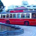 予定通り10:02JR桜木駅前の「あかいくつ」の乗り場からレトロ調の赤い周遊バスに乗り、万国橋を渡り、ワールドポーターズの脇を抜け、ハンマーヘッドでUターンし、赤レンガ倉庫に止まり、象の鼻、クィーン・ジャック・キングの塔を見て、およそ30分、目的地の中華街(バス停は朝陽門側、昼食場所のほぼ前)に着きました。