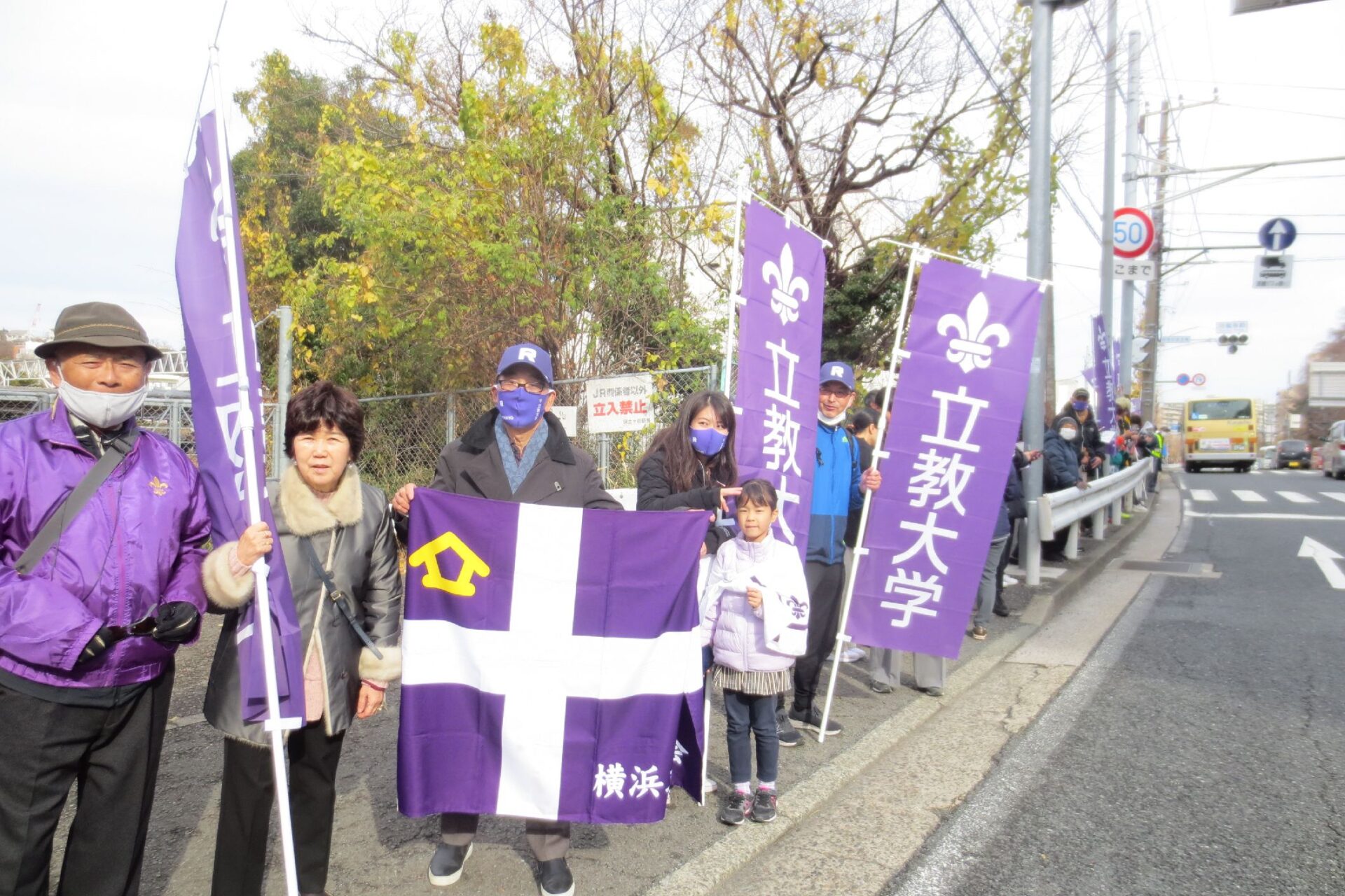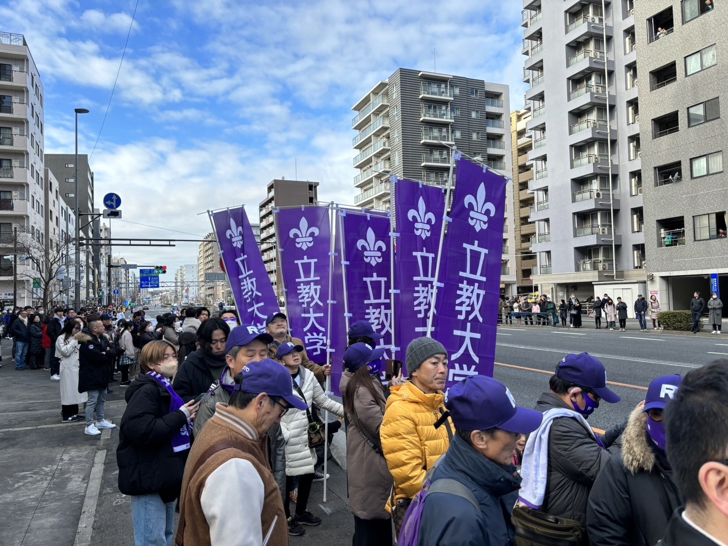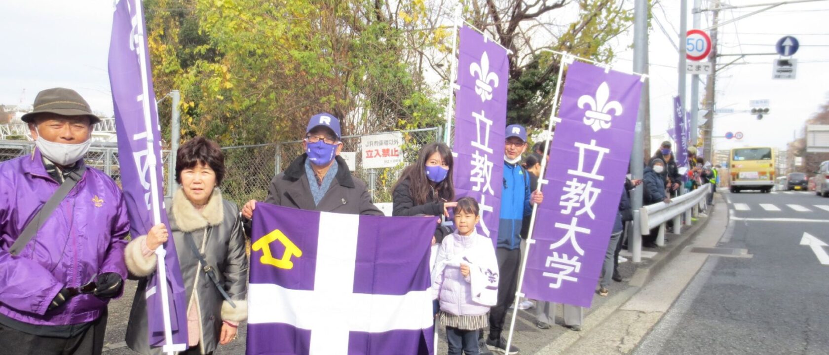 “R”のマークをつけた、江戸紫のタスキをかけた選手が目の前を通過したした時は一同大感激、立教愛を皆で共有いたしました。