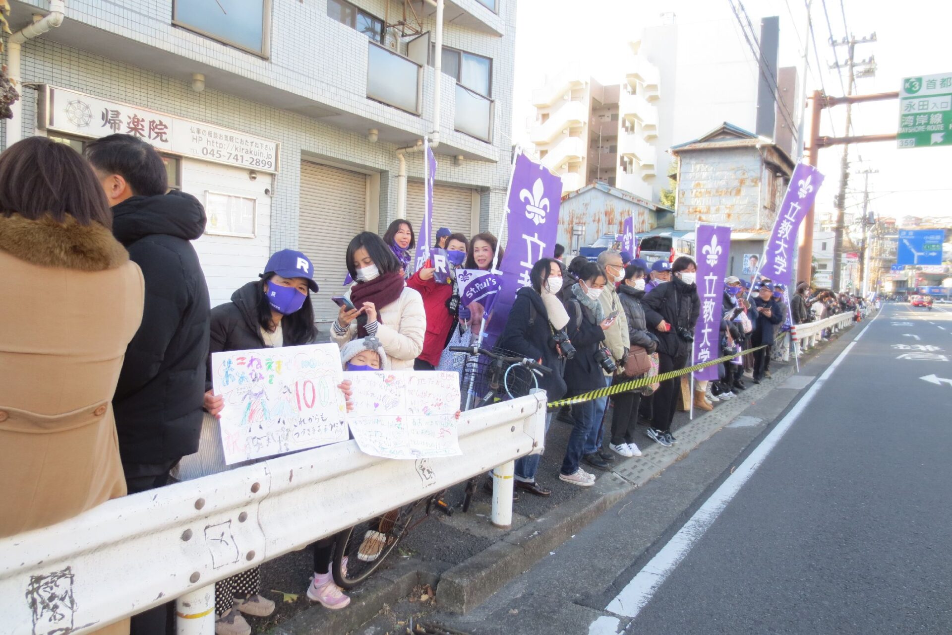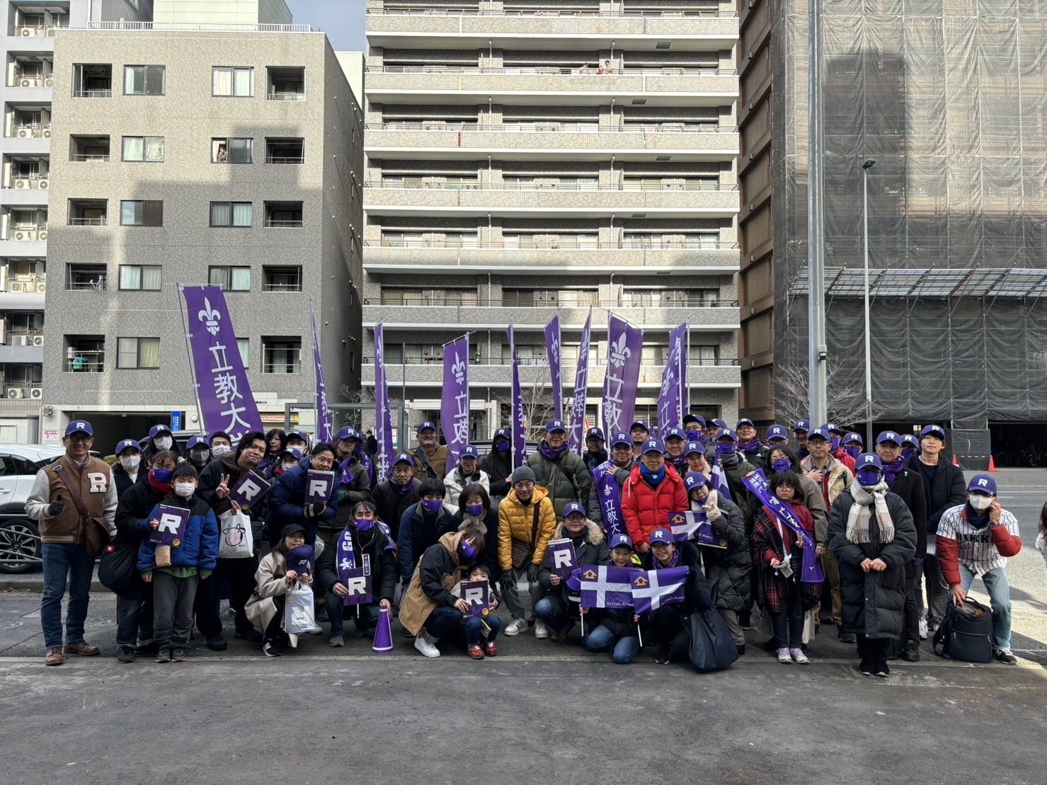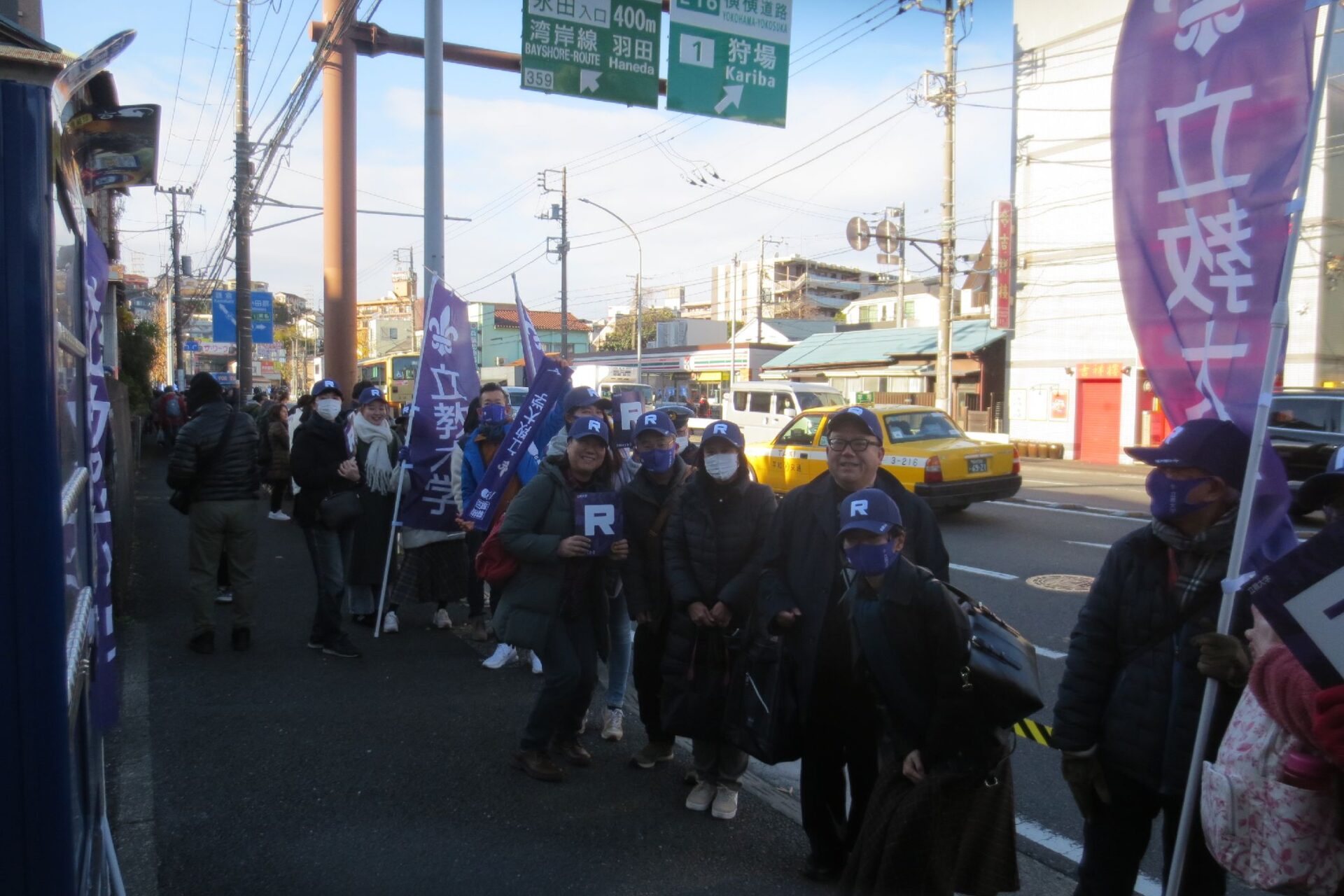 “R”のマークをつけた、江戸紫のタスキをかけた選手が目の前を通過したした時は一同大感激、立教愛を皆で共有いたしました。