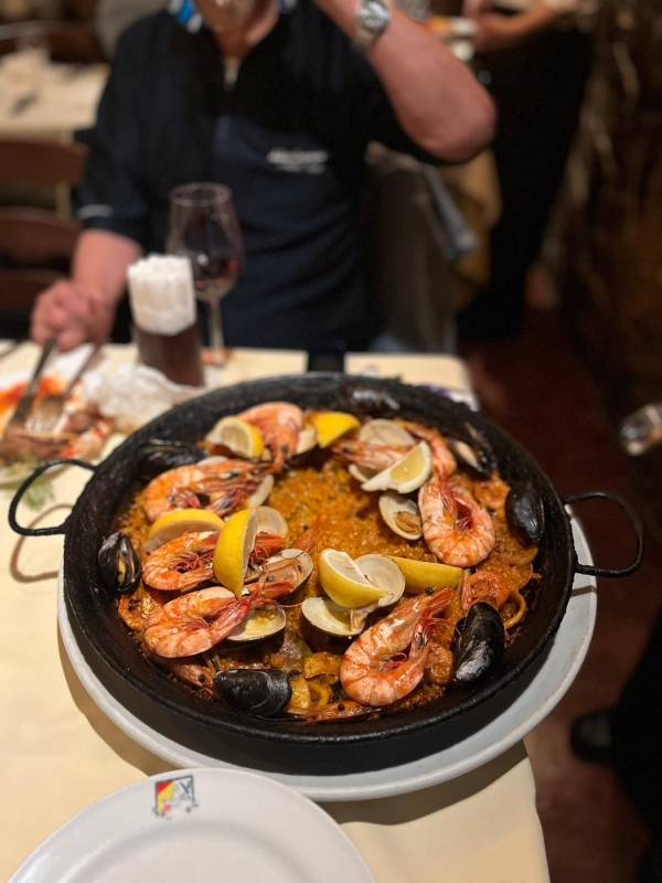 魚の香草オーブン焼き・牛肉のソテー・バレンシアのパエリア・デザート・コーヒー