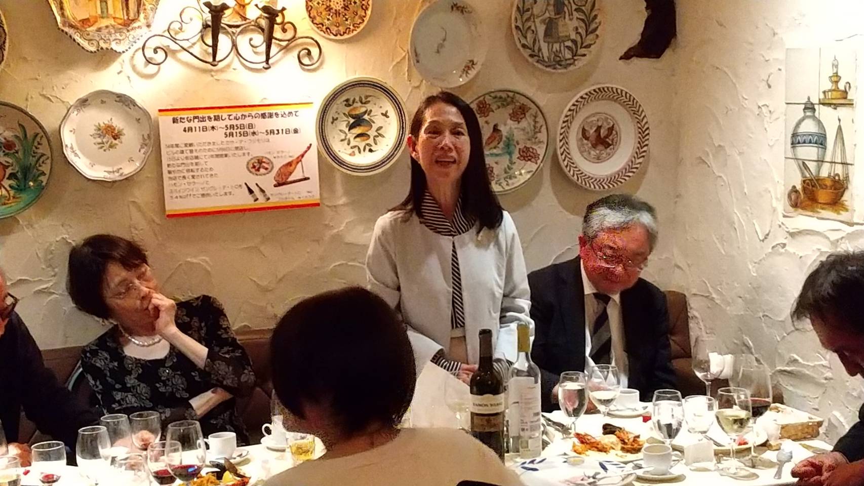 ジャズシンガーのマミコバードさん(文学部卒)が飛び入りで一曲(サマータイム)披露され、大いに盛り上がりました。次回(11月頃?)のアジア・エスニック料理を期し、散会しました。