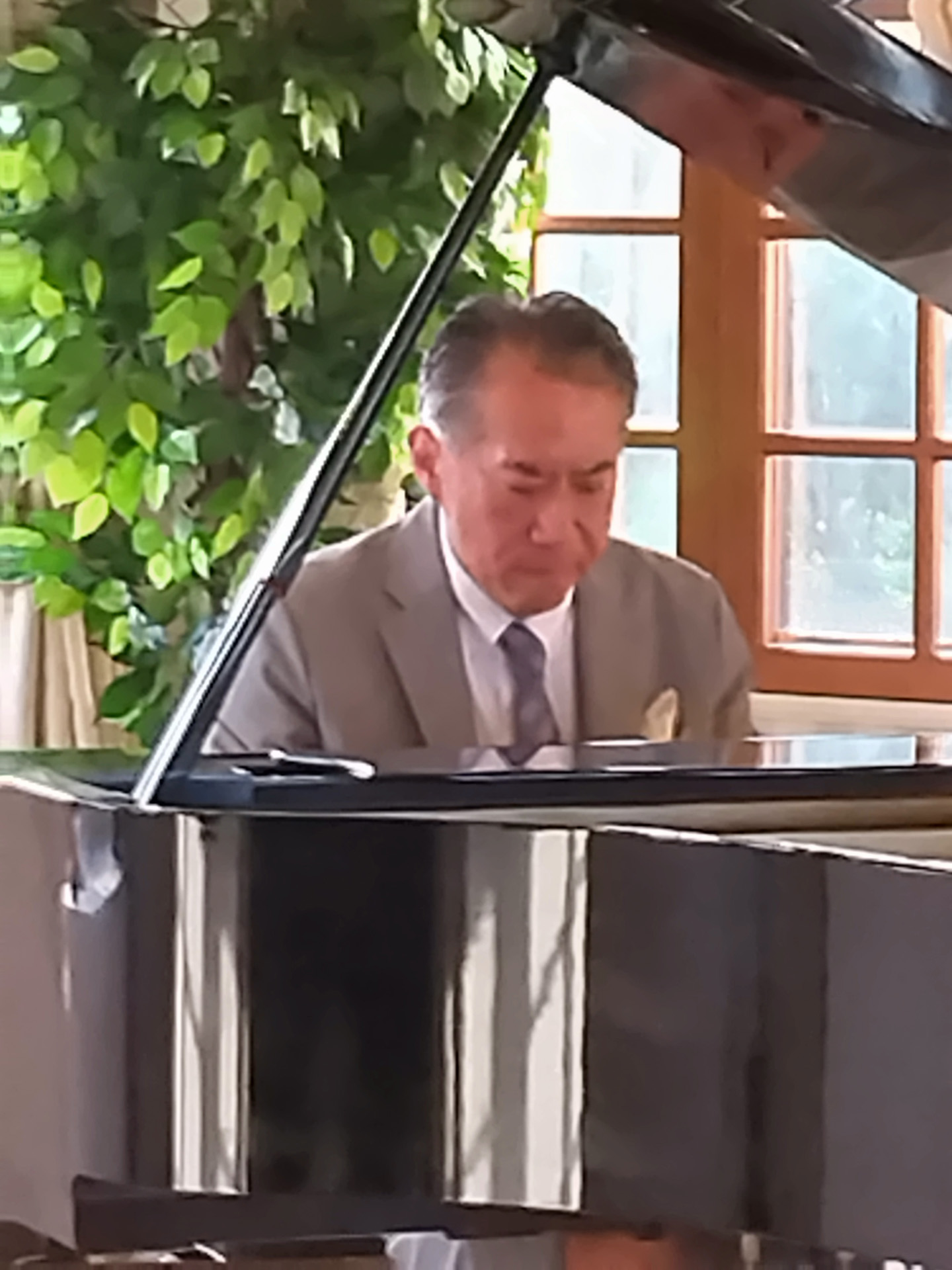イベントは、当会員の濱田茂さんによるピアノ演奏で、ショパンのバラード、リストの愛の夢、シェルブールの雨傘、ひまわりといった映画音楽やガーシュインの名曲、The Man I Loveなど幅広い曲目で会場を魅了しました。同じく会員のジャズシンガーMamiko Birdさんが飛び入りで、ピアノとのデュオで歌ってくれたFly Me To The Moonも素晴らしかったです。