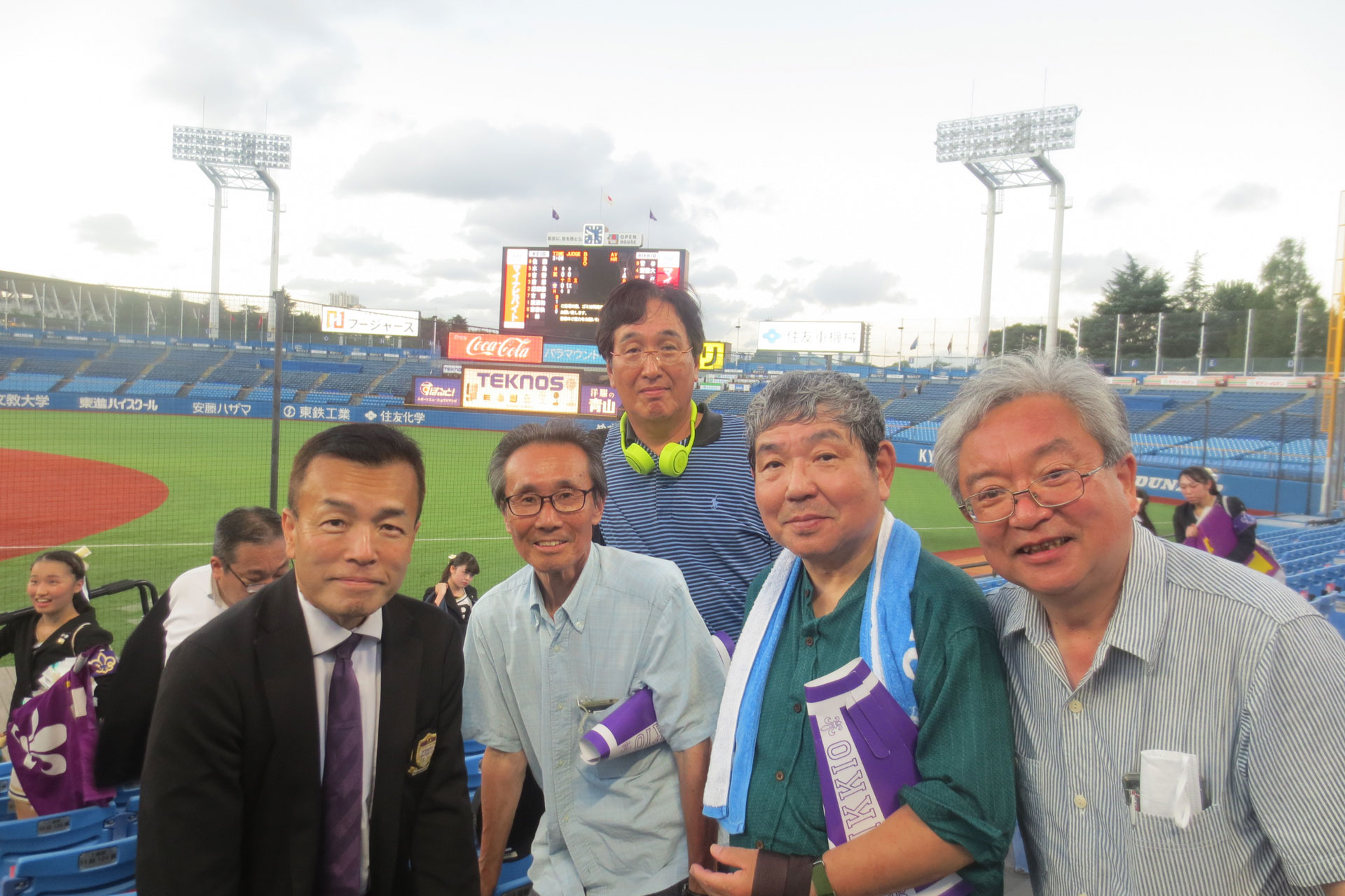 東京六大学野球秋季リーグ開幕戦、母校を応援すべく初戦9月14日(土)対慶應大学戦に行ってまいりました。参加者6人。学生席に陣取り、現役の応援団とともに応援しました。