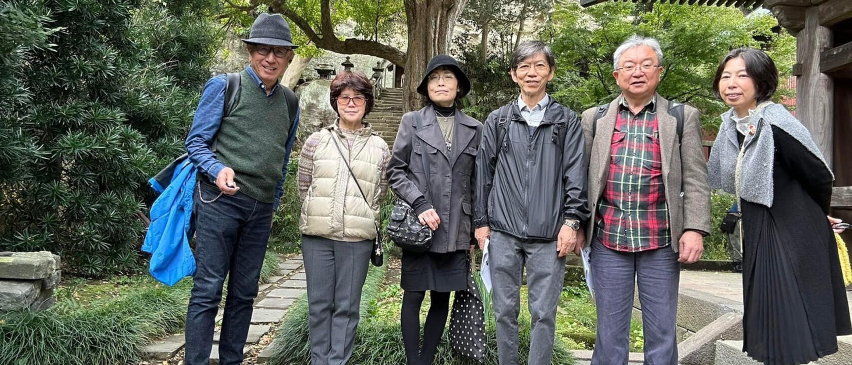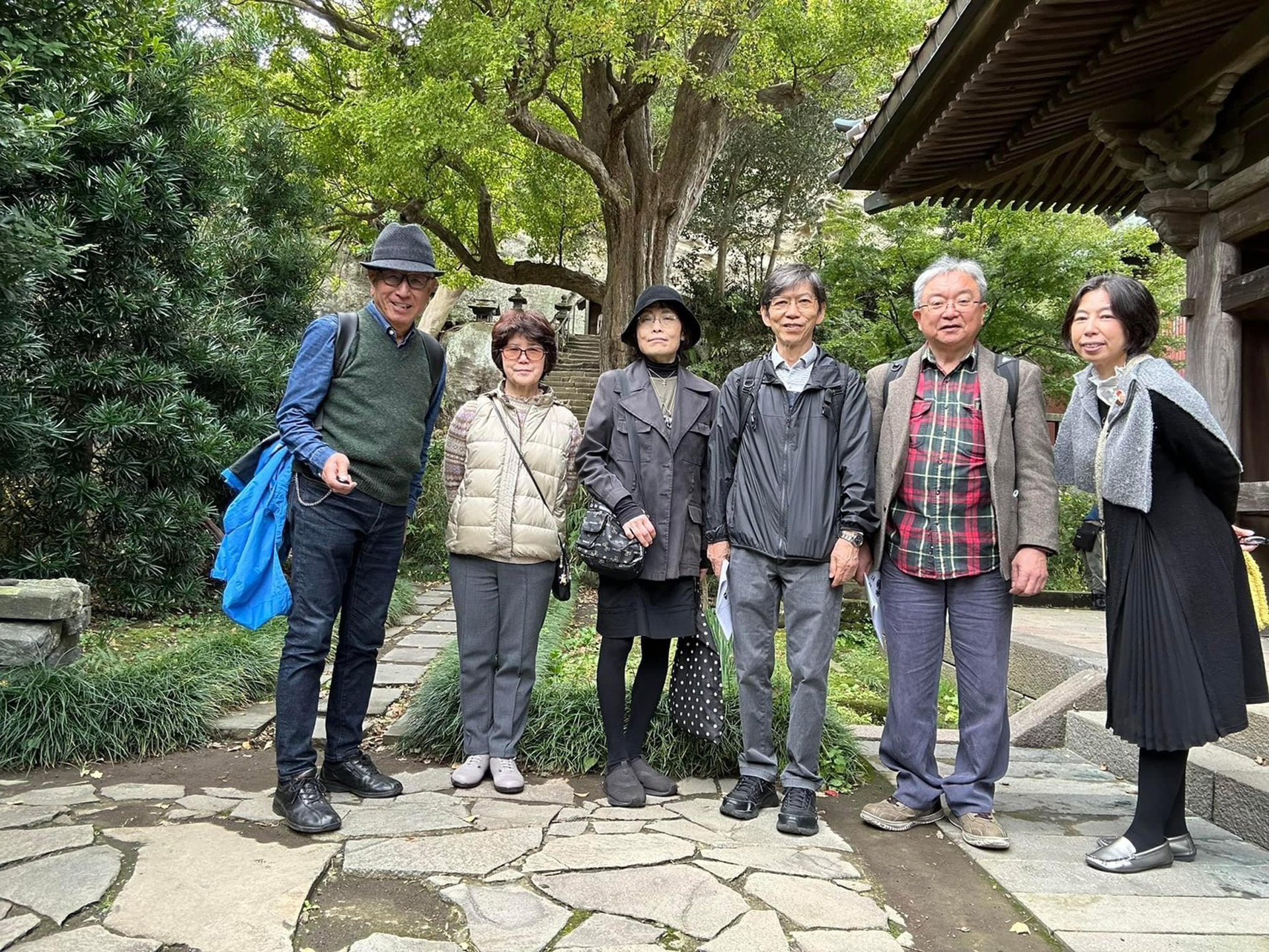11:00過ぎ、今回も中山裕さん(S62年卒)のご案内で鎌倉駅西口から踏切を渡り、小町通りに出る。ちょうどお昼前で外国人観光客、遠足の小学生、班活動の中学生の間を抜け、「今の子供たちは、お団子なんか食べられていいわねえ」と横目で見ながら英勝寺を目指す。