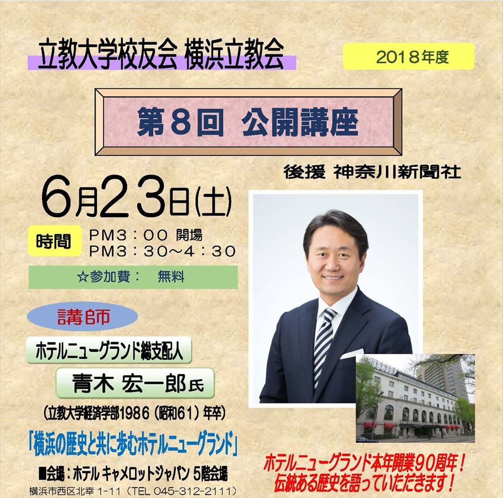 News:2018年度 クリスマス会、クイズ大会で盛り上がる 2019/01/10 2018年12月11日(火)に、2018年横浜立教会ファミリ… 続きを読む 「グルメの会」ご案内 2019/01/082022/05/23 グルメの会を企画しました。 今回は、銘柄数で1,000種類以… 続きを読む ファミリークリスマス会参加申し込み再送信等のお願い 2018/12/03 先にHPからクリスマス会参加の申し込みをいただき、誠にありが… 続きを読む 2018年横浜立教会ファミリークリスマス会のお知らせ 2018/11/052019/11/13 毎年恒例の「ファミリークリマス会」を今年も下記のように開催い… 続きを読む 同好会(クラブ活動・青年部会)へのお誘い 2018/11/052022/05/23 横浜立教会では会員の皆様に楽しんでいただくために、同好会活動… 続きを読む <ぶらり博物館・美術館>神奈川県立歴史博物館 2018/10/162022/05/23 (特別展)鎌倉ゆかりの芸能と儀礼 芸術の秋となりました。この… 続きを読む できたての「シウマイ」を試食しました 2018/10/132022/05/23 10月3日は 大型台風24号と台風25号の間の曇りがちの日で… 続きを読む 秋季東京6大学野球立教大学応援ツアー 早稲田大学戦、明治大学戦 募集 2018/09/192022/05/23 ようやく秋らしく涼しくなってきました。 横浜立教会「東京6大… 続きを読む 2018年10月 横浜立教会「聴く会」のご案内 2018/08/242022/05/23 本年も横浜野毛「にぎわい座」でのチャリティー寄席にご招待いた… 続きを読む 2018年秋の第18回「歩こう会」へのお誘い ~「崎陽軒 横浜工場」を見学しよう~ 2018/07/172022/05/23 横浜で大変なじみ深く 親しまれている「シウマイ」・「シウマイ… 続きを読む 盛況だった公開講座・総会 2018/07/12 報告:横浜立教会幹事 中川英樹(平成19年 社会) 6月… 続きを読む 「2018年度 横浜立教会交流の集い」のご案内 2018/05/282018/06/11 2018年5月吉日 会員各位 横浜立教会会長 大橋 英五 … 続きを読む 第8回 公開講座のお知らせ 2018/05/182018/06/11 立教大学校友会横浜立教会では、下記の内容で「公開講座」を開催… 続きを読む 青年部主催によるBBQ会開催いたしました 2018/05/142022/05/23 2018年4月28日(土曜日)、今年のGWの初日に横浜立教会… 続きを読む 2018年春の第17回「歩こう会」:浅草に行ってきました 2018/04/062022/05/23 4月4日は晴れ、都心の気温は26度を超えて、今年はじめての夏… 続きを読む 2018年春の第17回「歩こう会」へのお誘い ~特別公開中の浅草寺「伝法院庭園」を観に行こう~ 2018/03/022022/05/23 東京を代表する観光地のひとつ 浅草寺を訪ねます。 浅草寺の伝… 続きを読む 共有:Tweet